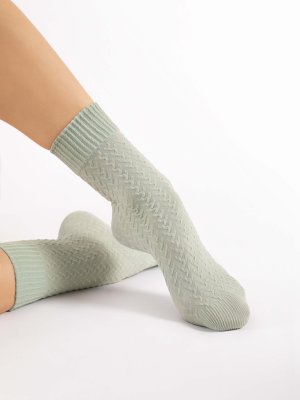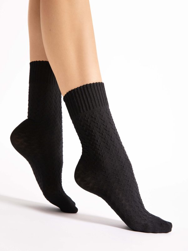 - einfarbige Socken mit geprägtem Muster