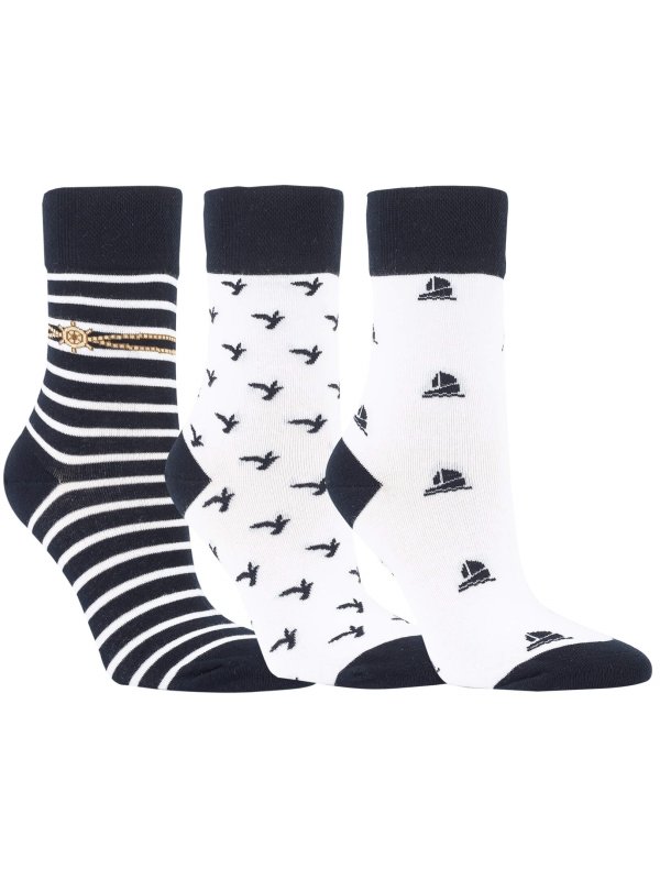 Socken Damen - Lady - Design - Marine/Weiß - 3er-Pack