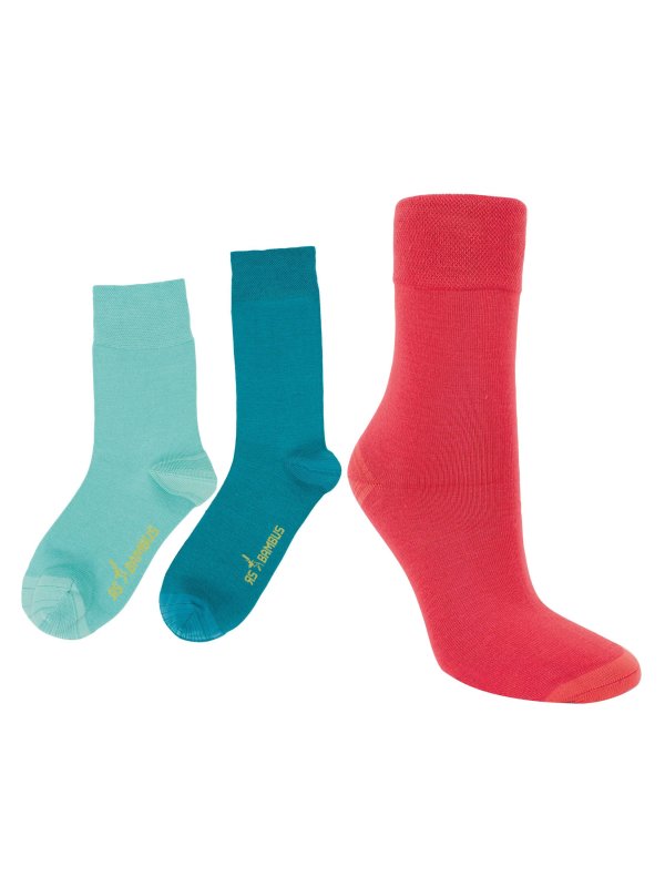 Harmony Unisex Socken aus Bambus. Diese Strümpfe aus Bambus sind unglaublich bequem und weich zu tragen. Hier kannst Du Deinen Look mit schönen und kräftigen Farben komplettieren. Die Bambusviskose leitet Feuchtigkeit effektiv von den Füßen ab und macht die Socke atmungsaktiv. Somit hast Du stets trockene und warme Füße. Perfekt für aktive Menschen. Der handgenähte Zehenbereich, die unauffälligen Nähte, sowie der verstärkte Zehen- und die Fersenbereich stehen für Komfort. Die Lieferung erfolgt als 3er-Packung mit den Farben Türkis/Petrol/Rot.