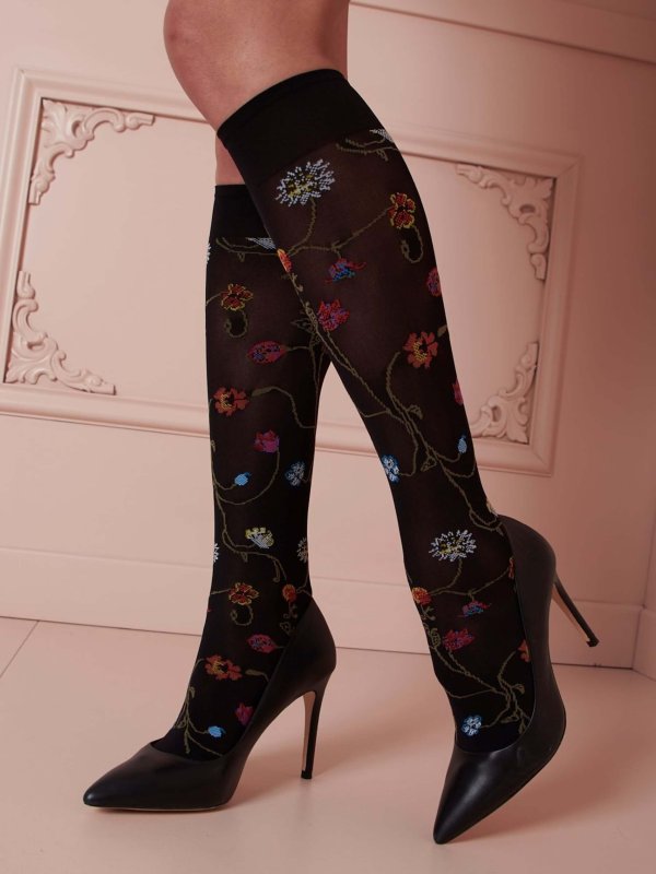 Trasparenze Kniestrümpfe Platino - Nylon Mikrofaser in 80 den - mit Blumenmuster