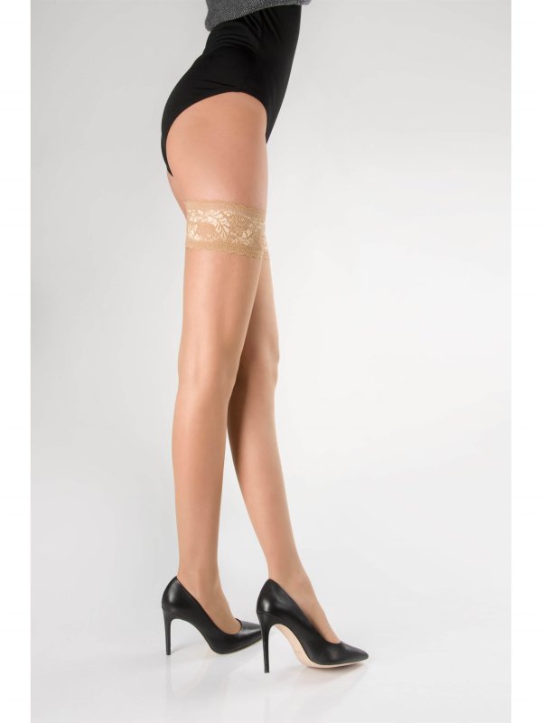 Halterlose Strümpfe - Pomodoro 20 den - Breite Spitze