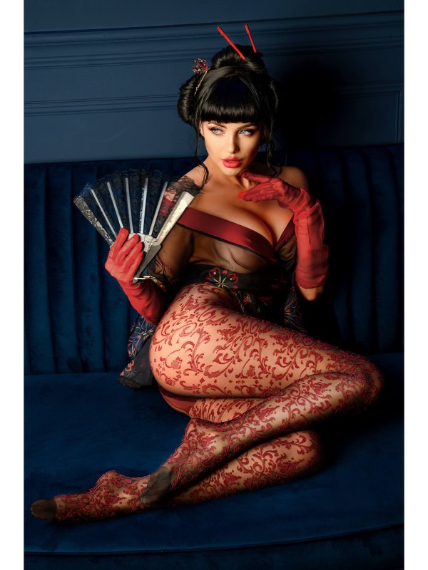 Diese Ouvert Strumpfhose mit feinem Burgundermuster ist ein sinnliches Spiel aus Farbe und Form - elegant, verführerisch und unglaublich feminin. Das zarte Ornament zieht sich über die gesamte Beinlänge und verleiht dir bei jedem Schritt eine Note von Luxus. Der tiefschwarze Grundton bildet den perfekten Rahmen für die warmen, burgunderroten Akzente - ein Look, der gleichzeitig geheimnisvoll und stilvoll wirkt. ✨