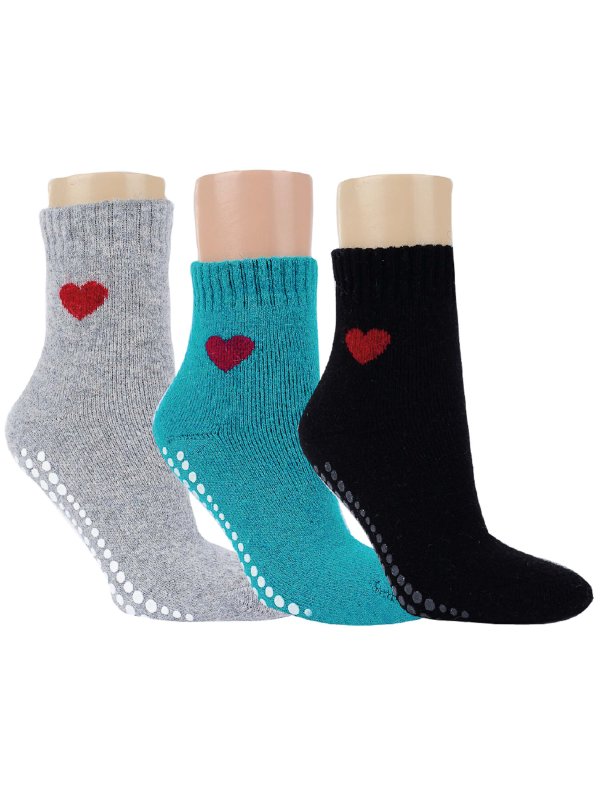 Kuschelige ABS-Wollsocken, hergestellt aus einer Kombination mit 23 % Wolle und 15 % Angorawolle. Dieses rutschfeste ABS-Modell mit hohem Wollanteil ist wunderbar warm und weich. Erhältlich in 3 wunderschönen Farben mit einem Herz am Schaft. Das Modell ist unifarben und mit Gumminoppen an der Sohle ausgestattet, damit Du immer einen sicheren Stand hast. Diese Wollsocken sind sehr bequem und weich zu tragen. Wollsocken eignen sich perfekt für das kältere Wetter. Diese Socken sind mit einem Komfortrand gefertigt. Erhältlich in den Farben Petroleum, Schwarz oder Silber.