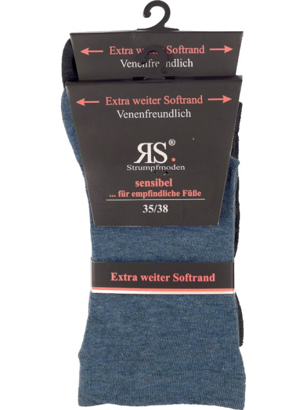 Die Sensibel Strümpfe von Harmony sind  purer Luxus für Deine Füße. Sie verfügenüber einen extra weiten Softrand und sind dadurch besonders gut für alle mit empfindlichen Füßen und Knöcheln geeignet. Sie werden ohne einschnürenden Gummizug gefertigt. Der Zehenbereich ist handgekettelt und die Strümpfe sind frei von drückenden Nähten. Dank des verstärkten Zeh- und Fersenbreichs und der extra feinen Maschenqualität werden Dir diese Strümpfe für lange Zeit gute Dienste leisten und Deine Füße äußerst komfortabel warm halten. Die Lieferung erfolgt als 2-er Pack in Jeansfarben.