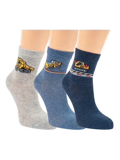 Schöne Kindersocken mit Kipper/Bagger Motiven, die das Knöchelteil zieren. Diese flotten Strümpfe sind als 3er-Pack in Silber/Jeans/Dunkeljeans erhältlich. Der handgenähte Zehenbereich, die unauffälligen Nähte, sowie der verstärkte Zehen- und Fersenbereich sorgen für Komfort.