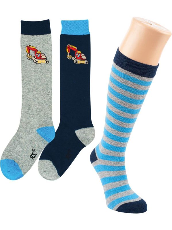 Kinder - Kniestrümpfe - Bagger/Streifen - 3er-Pack
