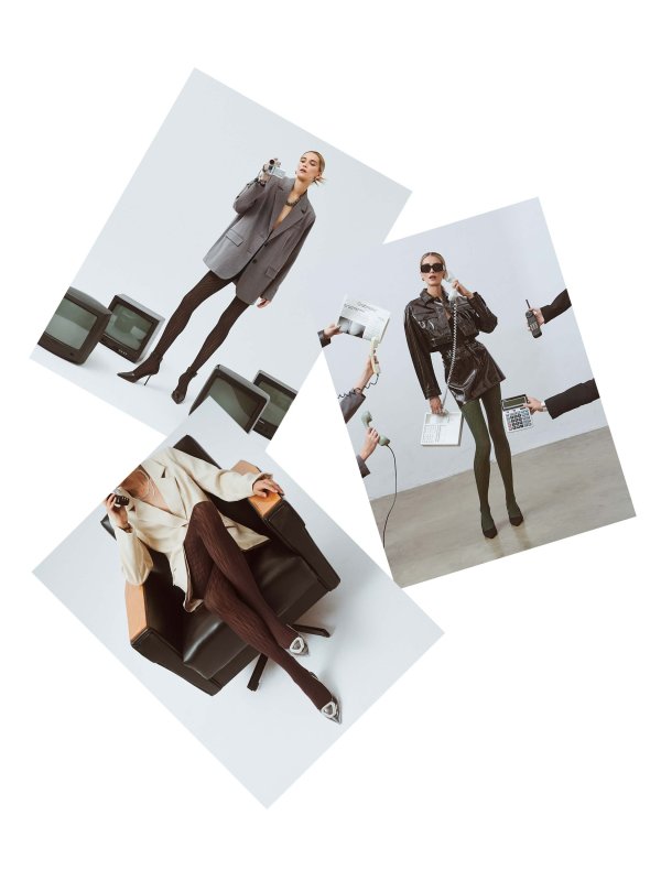 - Strumpfhosen mit einem geometrischen Fischgrätenmuster