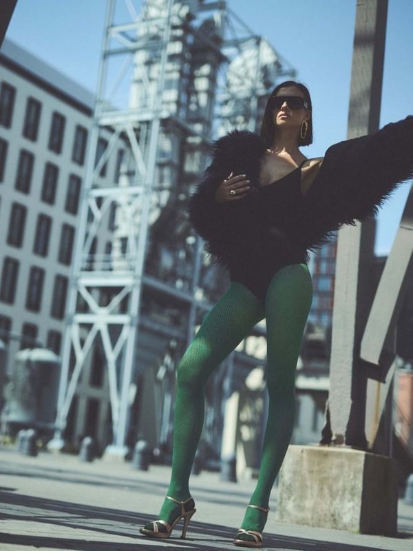 Durch das geometrische Mikro-Netz wird das Bein optisch gestreckt, was für eine besonders schmale und elegante Silhouette sorgt.