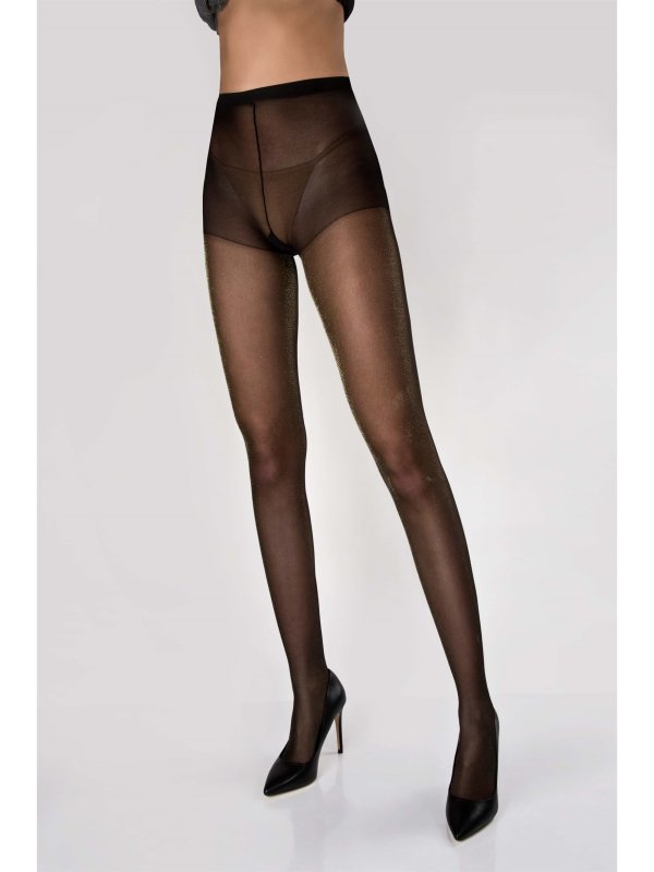 Strumpfhosen des italienischen Herstellers Wooti sind von fantastischer Qualität, so auch die Strumpfhose Regina 40. Diese Strumpfhose verfügt über einen 21%igen Anteil an metallischem Garn und ist damit die richtige Wahl für Dich, wenn Du nach einer fantastischen Glitzerstrumpfhose suchst, mit der Du die Königin einer jeden Party sein wirst. Die Strumpfhose besitzt einen Baumwollkeil, der für die optimale Passform sorgt. Regina verfügt über einen verstärkten Zehenbereich und wird mit komplett flachen Nähten gefertigt, dementsprechend wird Dir ein optimaler Tragekomfort garantiert. Hol' Dir am besten sofort diese qualitativ hochwertige und bequeme Strumpfhose, denn mit ihr bereicherst Du Deinen Kleiderschrank mit einer wunderbaren Glitzerstrumpfhose, die Du mit all Deinen Lieblingsoutfits kombinieren kannst.
