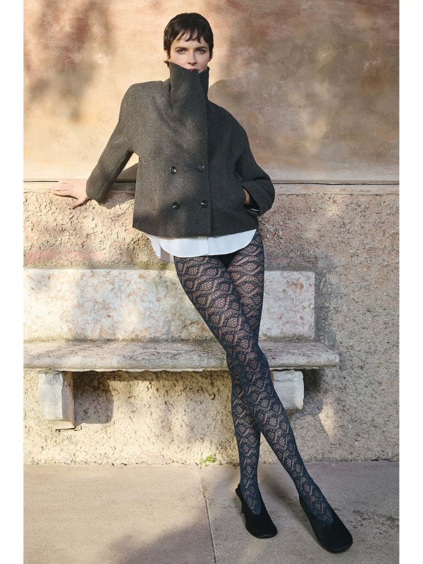 Netzstrumpfhose - Trasparenze - Fog - Geometrische Spitze - Mikrofaser