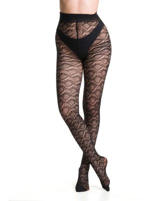 • Mikrofaser-Netzstrumpfhose mit geometrischer Spitzenstruktur